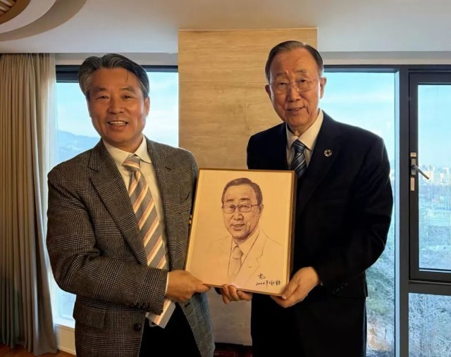 2007年至2016年,潘基文出任联合国第8任秘书长,这段长达10年的任职经历,让他与中国的情谊愈发深厚,结下了难以割舍的不解之缘。10年间,他先后11次到访中国,足迹遍布大江南北、长城内外,从北京的外交殿堂到山东的文化圣地,从繁华喧嚣的现代化都市到蒸蒸日上的乡村田野,每一次到访都是一次深入的交流、一次情感的升华,每一处足迹都承载着他对中国的热爱与尊重,也让他对中国的历史背景和文化、发展成就、民族精神有了更全面、深刻的理解,对中国人民的情谊也愈发浓厚线周年系列峰会期间,习主席代表中国向联合国赠送了寓意深远的“和平尊”珍贵礼物。潘基文对这件雕刻着以中国古代青铜器中的“尊”为原型、饰有7只和平鸽与太阳图案、承载着中国和平理念的艺术品喜爱有加,特意将其放置在联合国大厦的显要位置,让来自世界各国的代表都共同感受中国对和平的珍视、对多边合作的追求。这份沉甸甸的礼物,不仅是中国与联合国友谊的生动见证,更成为潘基文与中国深厚情谊的鲜活写照,凝聚着两国人民、中外各界对和平发展的共同期盼。